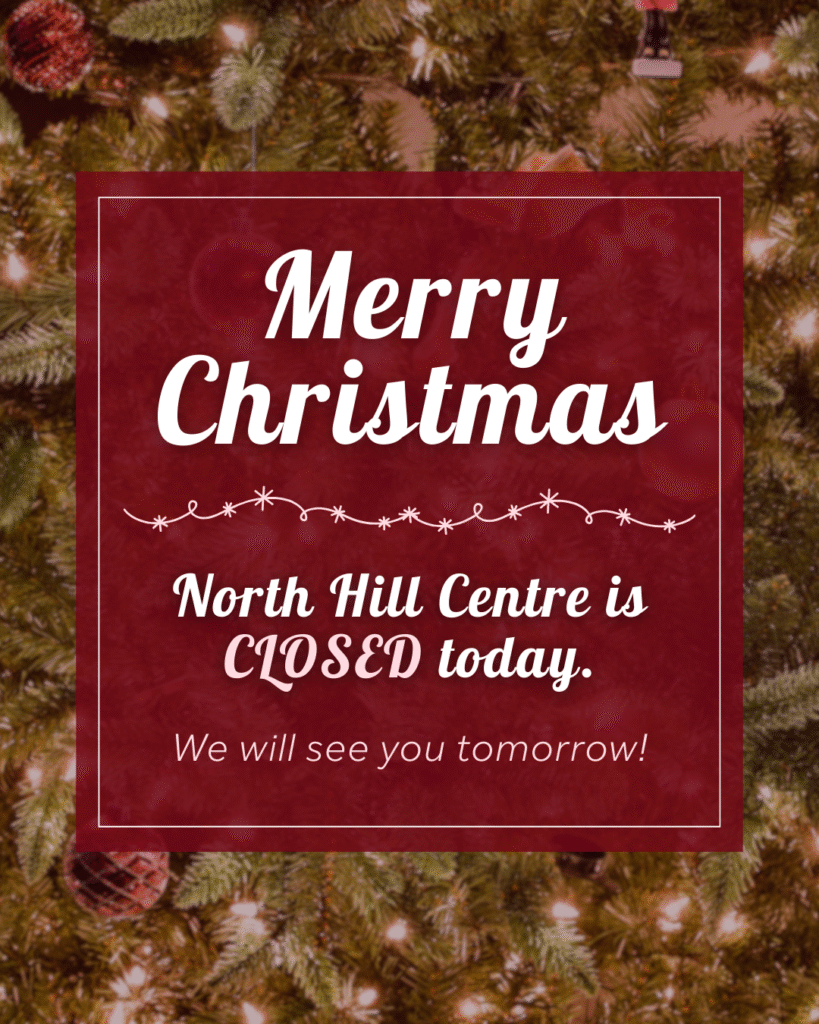 A quick reminder: North Hill Centre is closed tomorrow for Christmas Day.