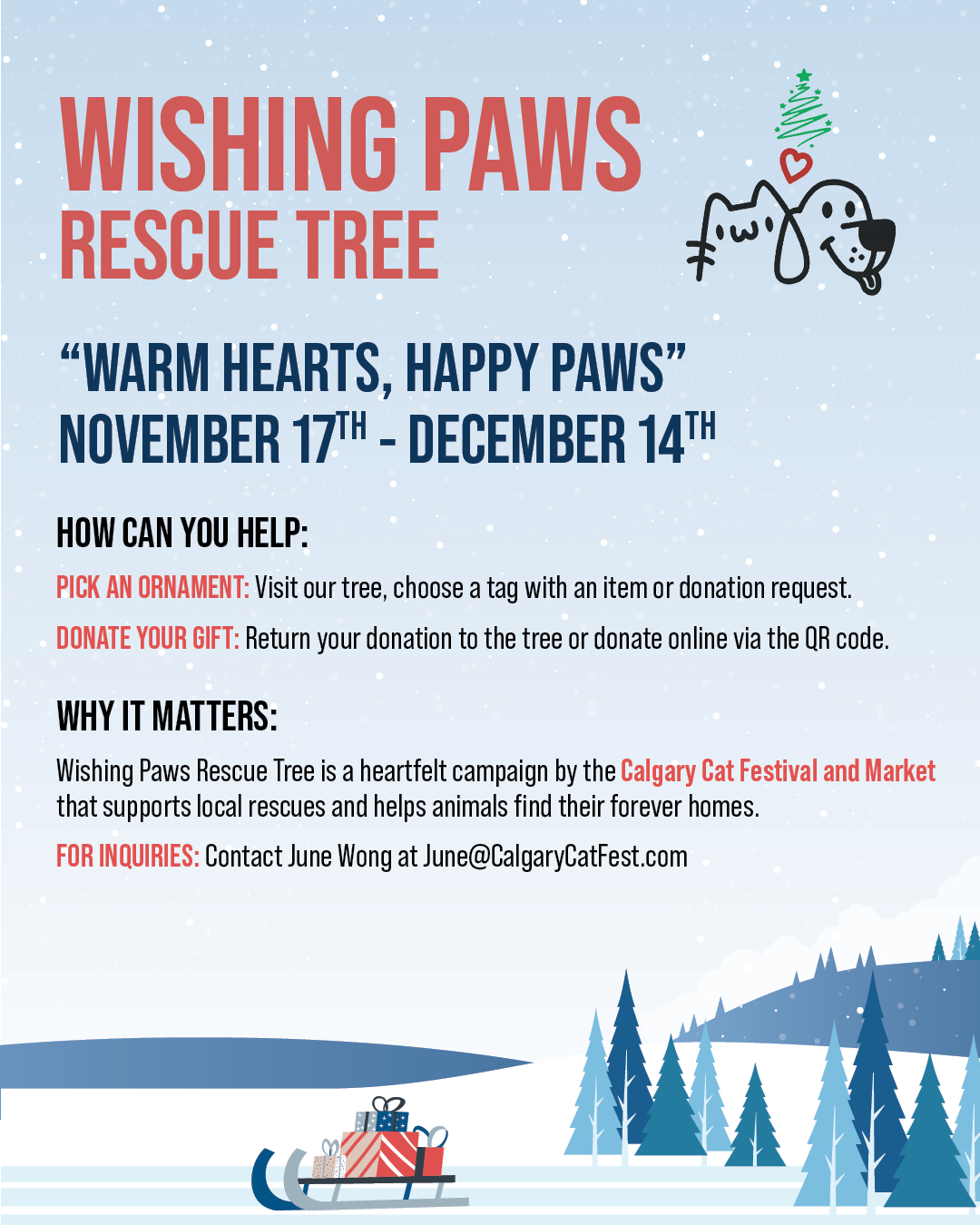 The Wishing Paws Rescue Tree is a heartfelt campaign by the Calgary Cat Festival & Market, supporting local rescues and helping animals find their forever homes.