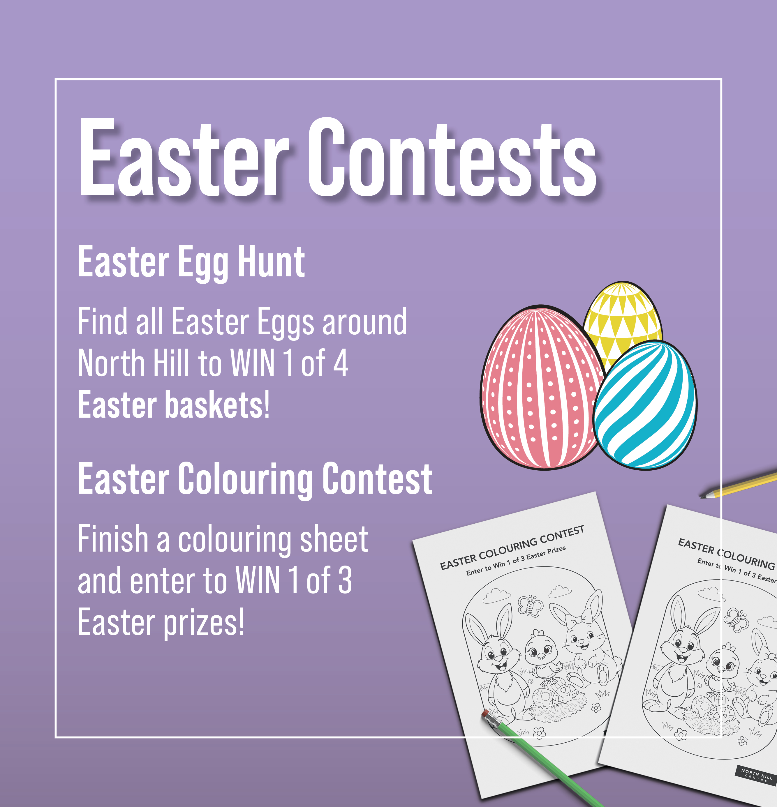 Ages 2-Adult can enter to WIN an Easter Prize! Pick up and drop off colouring sheets at Centre Court. 1st place prize valued at $35. 2nd place prize valued at $25. 3rd place prize valued at $15. Drop off finished colouring sheet at Centre Court until April 7th.